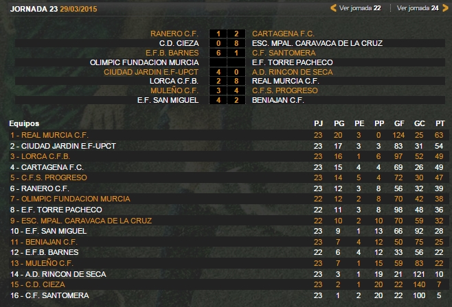 Si no está actualizado también puedes consultar la clasificación en la web de la FFRM pinchando